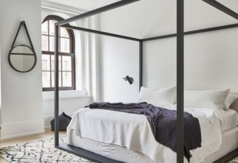Desain ruangan minimalis yang terakhir adalah kamar tidur. Kasur merupakan benda utama yang harus ada. Maka dari itu, kamu harus membuat kamar tidur terasa lebih nyaman. Untuk menghadirkannya, gunakan rangka kasur kotak yang menjulang ke atas warna hitam. Kemudian, taruh kasur beserta penyangga berwarna putih. Kombinasi warna hitam dan putihnya terlihat seimbang di kamar tidurmu. Tak hanya itu saja, untuk mendukung gaya ruangan minimalis, gunakan furniture lain yang memang dibutuhkan, seperti nakas, kursi, cermin, dan lampu dekat kasur.