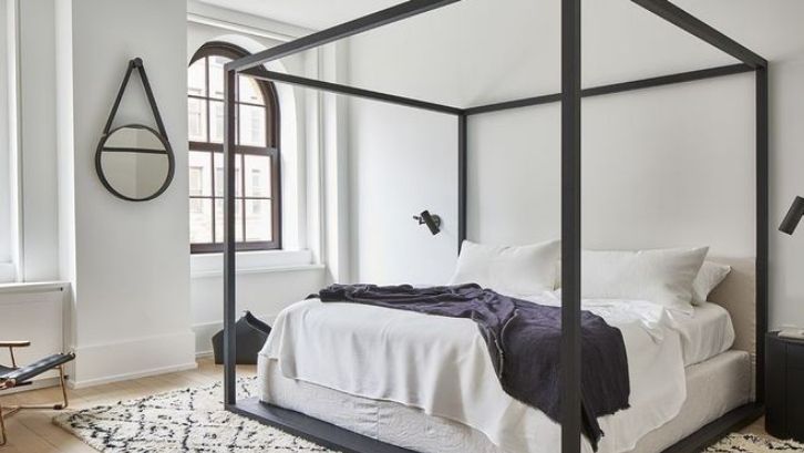 Dinding warna putih cerah dikombinasikan aksen hitam sederhana. Memberikan kesan rapi dan simpel. Tidak perlu banyak bermain warna. Anda bisa gunakan motif pada interior karpet, selimut atau bed cover yang bermotif. Desain modern serenity ini memang diciptakan agar Anda bisa merasakan ketenangan dan kedamaian saat berada di dalamnya.