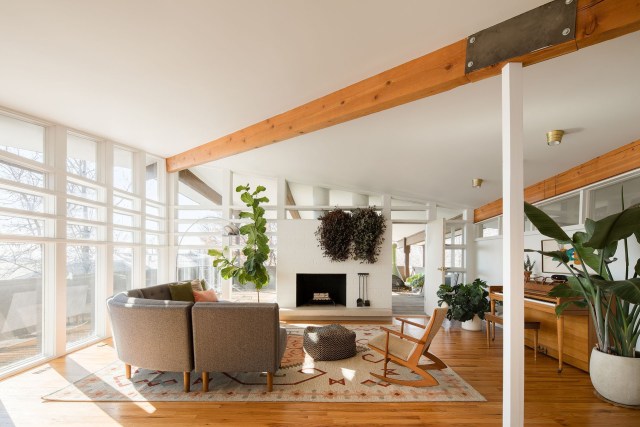 Salah satu keuntungan utama memiliki ruang keluarga terbuka ialah adanya limpahan cahaya yang berasal dari jendela. Seperti pada ruang keluarga yang satu ini. Dengan kehadiran jendela besar tanpa ditutupi gorden atau vertical blind, ruang keluarga senantiasa terang secara alami tanpa perlu tambahan cahaya lampu.