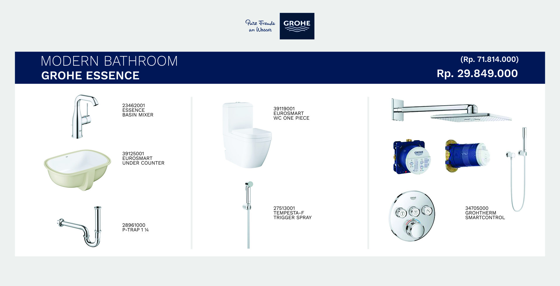 Promo potongan harga “Modern Bathroom” Grohe Lineare dari Distributor Niro Granit Tile Banjarmasin dan Grohe Essence dari Distributor Niro Granit Tile Banjarmasin menjadikan kamar mandi rumah anda tampak semewah hotel.