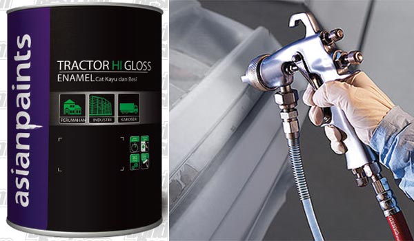 Salah satu contohnya adalah Tractor Hi Gloss Enamel Cat Kayu dan Besi Berkualitas Tinggi. Tractor Hi Gloss Enamel dengan TET™ adalah produk cat enamel dari Asian paintsuntuk permukaan kayu dan besi yang memberikan hasil akhir kilap sempurna, daya tutup dan daya sebar terbaik. Serta produk ini melindungi tembok, kayu dan besi Anda, sehingga tetap awet dan tahan lama.