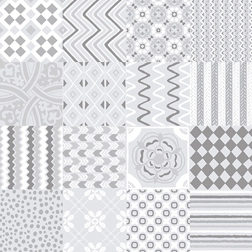 Pola kontemporer dari koleksi Mozaico memadukan tampilan semen dengan desain geometris artisanal modern dalam warna-warna tanah yang halus, menciptakan pengalaman visual yang unik pada dinding dan lantai.