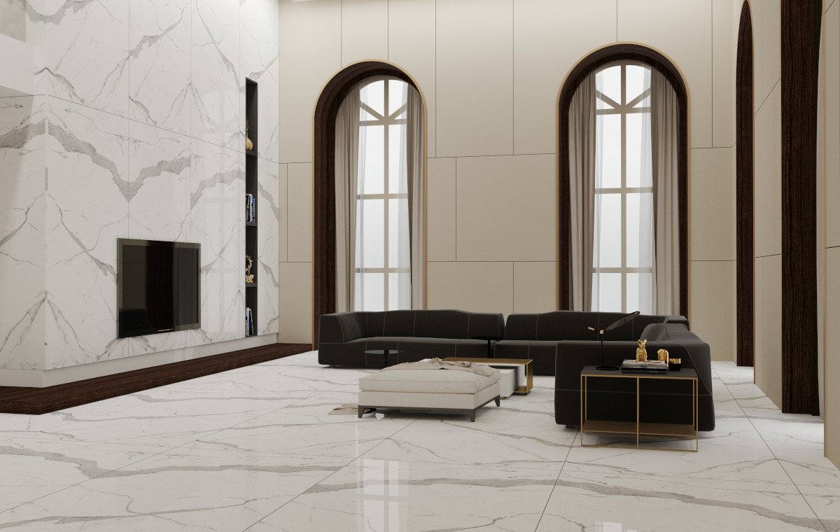 HOME > Produk Bahan Bangunan Kami > GRANIT 120X240 LUX CALACATTA ELITE-GLX21 LEFT GLAZED POLISHED NIRO GRANITE
