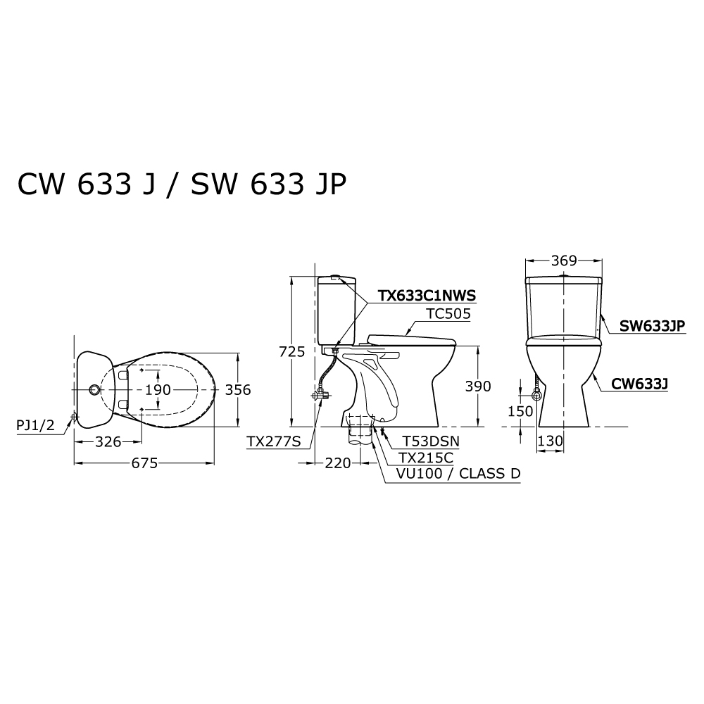 • TOTO CW633J(TOILET BOWL(S-TRAP)) + TX902CV20(TX215C+T53DSN) WHITE