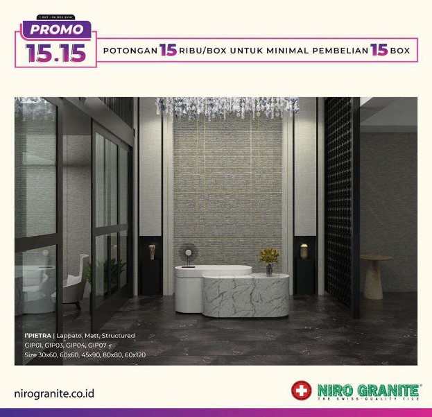 Dapatkan Potongan 15 Ribu/Box Untuk Minimal Pembelian 15 Box hanya di Distributor Niro Granit Tile Banjarmasin!